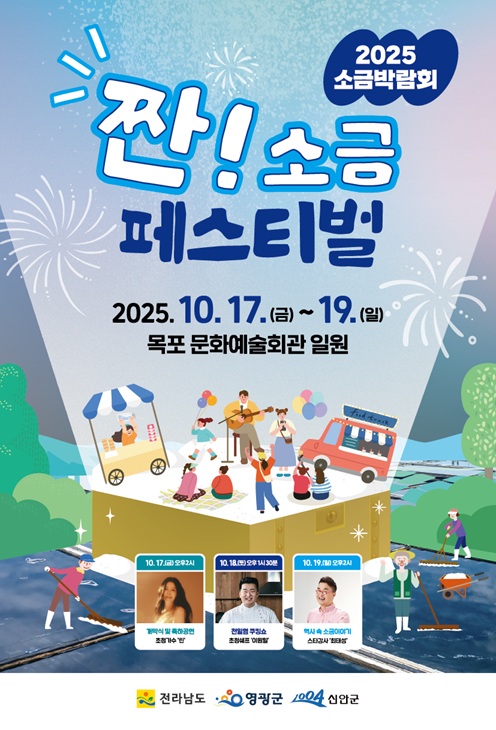 신안군은 10월 17일 ‘짠! 소금 페스티벌’을 주제로 ‘2025 소금박람회’를 전라남도, 영광군과 공동으로 개최한다고 밝혔다. 이번 박람회는 10월 17(금)부터 10월 19일(일)까지 3일간 목포문화예술회관 일원에서 관람객을 만난다.