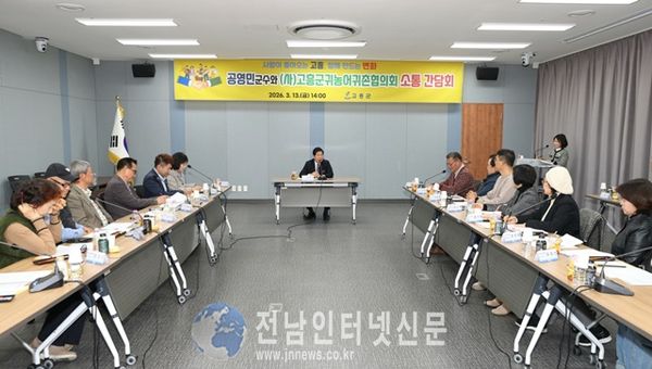 [전남인터넷신문/강계주] 고흥군(군수 공영민)이 13일 군청 팔영산홀에서 (사)고흥군귀농어귀촌협의회(회장 박강석) 집행부와 함께 귀농어 귀촌인의 안정적인 정착과 인구 유입 확대를 위한 소통 간담회를 개최했다.