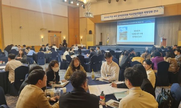 22일 영암에서 ‘2026. 학교폭력 업무담당자와 학교전담경찰관 합동 역량강화 연수’가 진행되고 있다.(사진제공/전남교육청)[전남인터넷신문/안애영 기자]전라남도교육청과 전남경찰청이 22일 영암에서 학교폭력 업무 담당자와 학교전담경찰관(SPO)이 참여하는 합동 역량강화 연수를 개최했다.