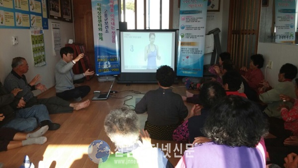 마을 경로당을 방문 치매예방 체조를 가르쳐 드리고 있다(이하사진/고흥군보건소 제공) 군은 관내 250여 개 경로당을 순회하며 어르신들을 대상으로 동영상을 활용한 치매 예방 체조 보급과 치매 조기 검진을 실시해 군민들로부터 좋은 호응을 받고 있다.