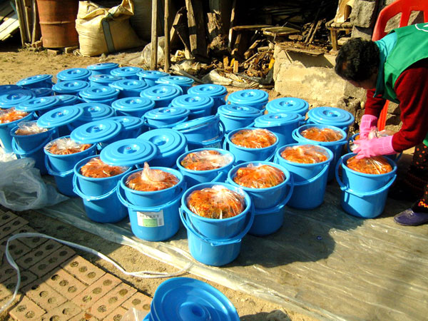 송동면에서는 11월 28일부터 30일까지 송동면 남.여 새마을지도자 협의회 회원들.발전협의회 임원.면직원 등 40여명이 함께 600여 포기의 사랑의 김장을 담궜다.