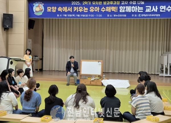 [전남인터넷신문/강계주] 나주교육지원청(교육장 변정빈)은 9월 18일과 19일 유치원 방과후과정 교사 100여 명이 참여한 가운데 2학기 수석교사와 함께하는 수업나눔을 운영했다.
