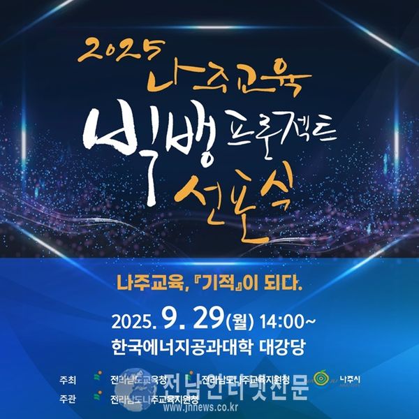 [전남인터넷신문/강계주] 나주교육지원청(교육장 변정빈)이 오는 29일 14시, 한국에너지공과대학교 대강당에서 「2025 나주교육 빅뱅 프로젝트」 선포식을 개최한다.