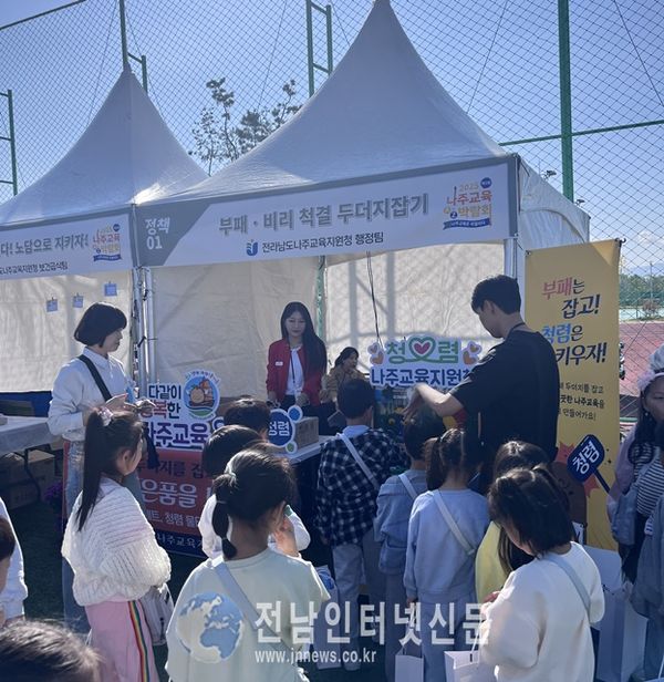 [전남인터넷신문/강계주] 나주교육지원청(교육장 변정빈)은 10월 23일부터 24일까지 한국에너지공과대학교(KENTECH)에서 열린 ‘제2회 나주교육박람회’에서 청렴 홍보부스를 운영하며, ‘부패척결 두더지잡기 게임’을 통해 청렴 문화를 즐겁게 알렸다.