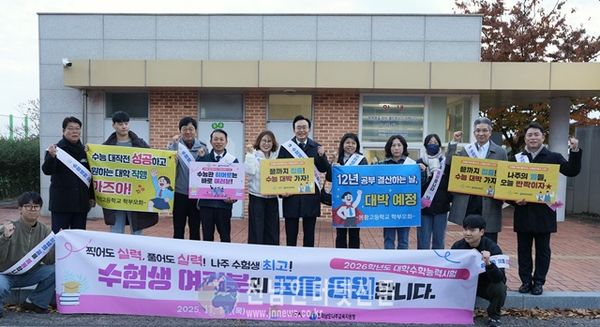 이번 응원에는 변정빈 교육장을 비롯해 윤병태 나주시장, 이재남 나주시의회 의장, 이재태 전남도의회 교육위원회 위원, 권석진 나주경찰서장 등 지역 주요 기관장이 참여해 수험생들에게 격려의 메시지를 전했다.