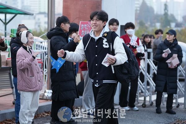 [전남인터넷신문/강계주] 나주교육지원청(교육장 변정빈)이 2025학년도 대학수학능력시험일인 13일, 지역 수능 시험장인 나주고와 봉황고 앞에서 수험생 응원 행사를 진행했다.