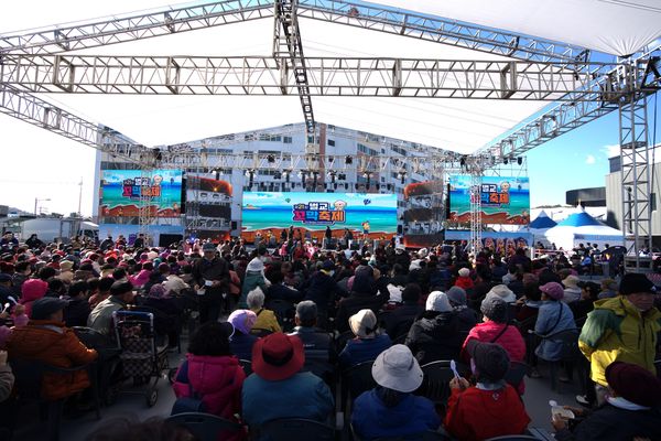 1-6. 보성군, 청정 갯벌에서 ‘제21회 벌교꼬막축제’ 성료_많은 관광객이 축제장을 찾아와 무대를 관람하고 있다