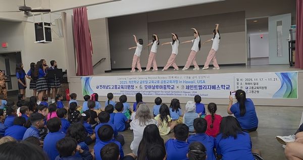 [전남인터넷신문/강계주] 전라남도고흥교육지원청(교육장 권형선)이 현지 시각 지난 11월 19일 오전 9시, 고흥 지역 6학년 학생 95명이 하와이 세인트엘리자베스학교 학생 약 150명과 함께 축제에 참여하여 한국과 하와이의 전통문화를 나누는 뜻깊은 교류 활동을 펼쳤다고 밝혔다.