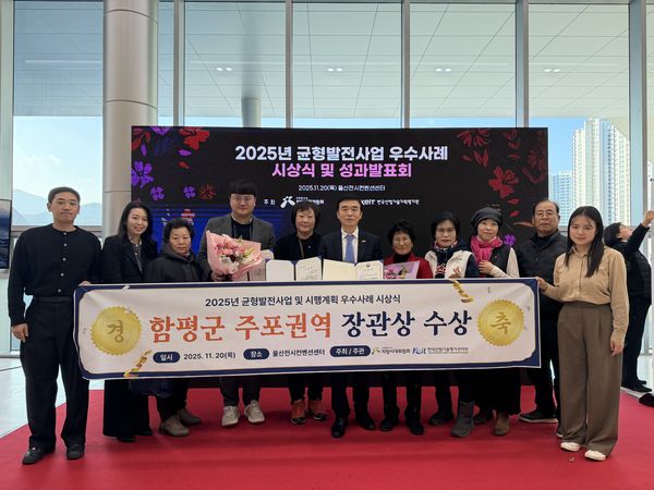 이번 수상으로 함평군은 2023년 취약지역생활여건개조사업으로 산업통상자원부장관상, 2024년 일반농산어촌개발사업의 시군역량강화사업으로 지방시대위원장 기관 표창을 받은 데 이어 3년 연속 균형발전 우수사례에 선정되는 성과를 이뤘다.