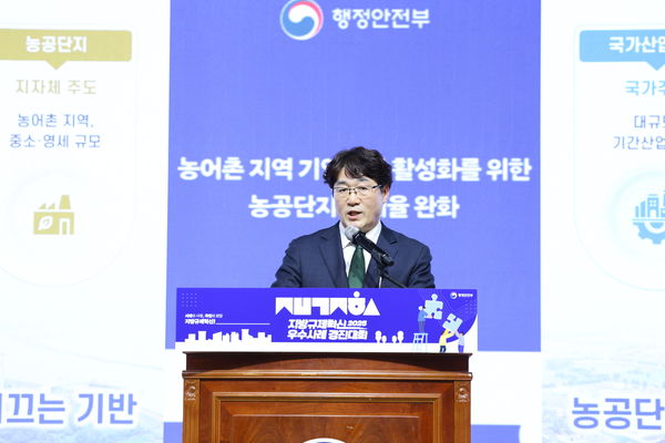 함평군은 26일 ‘농공단지 건폐율 규제 개혁’으로 행정안전부 주관 ‘2025년 지방규제혁신 우수사례 경진대회’에서 최우수상을 수상했다고 밝혔다. 경진대회는 지난 25일 정부세종컨벤션센터 국제회의장에서 개최됐다.