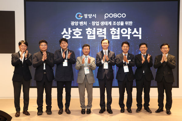이날 광양시와 포스코홀딩스는 지속 가능한 창업생태계 조성과 지역 혁신 기반 확충을 위해 ‘벤처·창업 생태계 조성을 위한 상호협력 협약’을 체결했다. 협약에는 △지역 창업기업 발굴·보육 △기술·비즈니스 지원 △창업 인력 양성 △지역 신성장 산업 연계 등 다양한 협력 과제가 포함됐다.