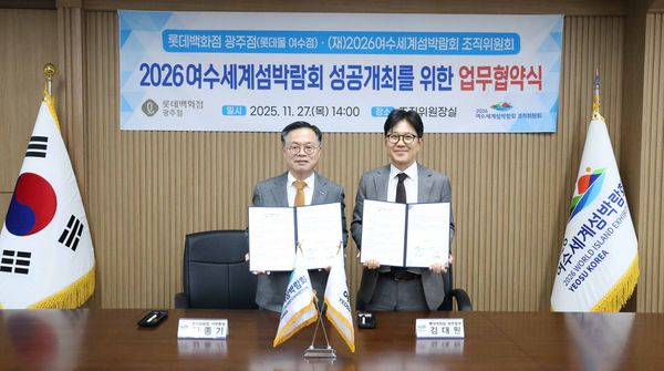 [전남인터넷신문](재)2026여수세계섬박람회 조직위원회(이하‘조직위’)는 지난 27일 롯데백화점 광주점(이하‘롯데백화점’)과 섬박람회 홍보 협력을 위해 업무협약을 체결했다.