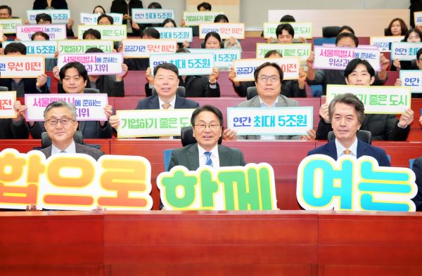 24일 강기정 광주시장이 광주과학기술원에서 '광주전남통합 에너지산업분야 미래비전설명회'에 참석해 광주전남 통합의 추진상황과 지역 에너지 신산업 육성 전략 등에 대해 시민들과 대화를 나눈 뒤 기념촬영을 하고 있다.(사진제공/광주광역시)