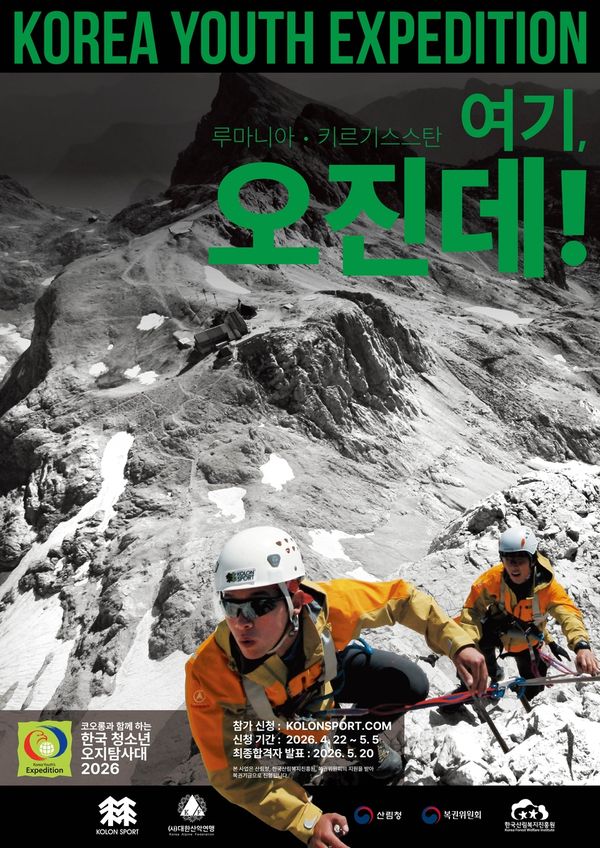 [전남인터넷신문]사단법인 대한산악연맹(회장 조좌진)은 4월 22일부터 5월 5일까지 '코오롱과 함께하는 2026 한국 청소년 오지탐사대' 대원을 모집한다고 밝혔다.대한산악연맹이 주최하고 코오롱인더스트리FnC부문(이하 코오롱FnC)의 코오롱스포츠가 공식후원사로 참여하는 이번 사업은, 올해 9년 만에 코오롱스포츠가 공식후원사로 함께한다는 점에서 더욱 의미를 더한다. 또한 이번 탐사대는 산림청, 한국산림복지진흥원, 복권위원회의 지원을 받아 복권기금으로 진행돼, 청소년들에게 보다 폭넓은 도전과 성장의 기회를 제공할 예정이다.