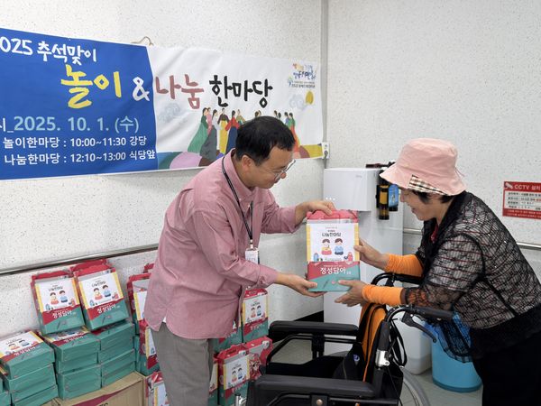 이번 행사는 윷놀이, 투호놀이, 계란한판게임 등 전통놀이 체험을 통해 참여자들이 즐겁게 어울릴 수 있는 시간을 마련하였으며, 이어진 나눔한마당에서는 따뜻한 마음을 담은 추석 선물세트가 전달되어 풍성한 명절 분위기를 더했다.