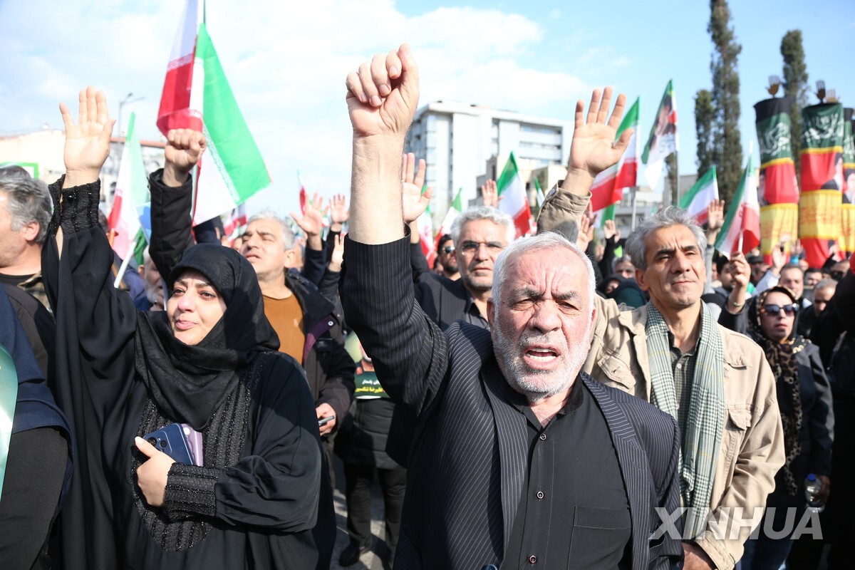이스라엘군의 공습으로 숨진 알리레자 탕시리 혁명수비대 해군사령관의 장례식이 테헤란 시내에서 진행되고 있다. [신화 연합뉴스 자료사진. 재판매 및 DB 금지]
