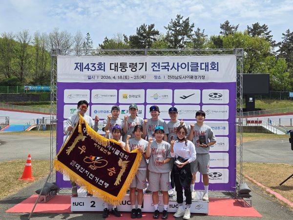 제43회 대통령기 전국 사이클대회 종합우승을 차지한 나주시청 사이클팀 (사진제공/나주시)[전남인터넷신문/안애영 기자]나주시청 사이클팀이 대통령기 전국사이클대회에서 2년 연속 종합우승을 차지했다. 다수 종목에서 고른 성적을 거두며 여자일반부 정상에 올랐다.