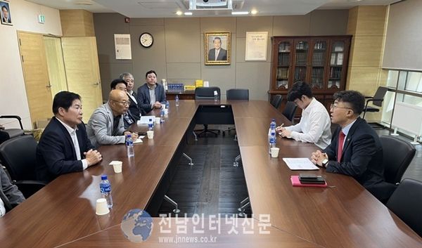 공영민 군수(왼쪽 끝)가 최진원 대사(오른쪽)를 면담하고 있다(이하사진/고흥군 제공)