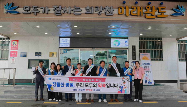 [전남인터넷신문/서성열 기자]완도군은 추석 명절을 맞아 10월 11일까지 ‘청렴 실천 주의보’를 발령하고 전 군민과 공직자를 대상으로 청렴 실천 캠페인을 전개한다.
