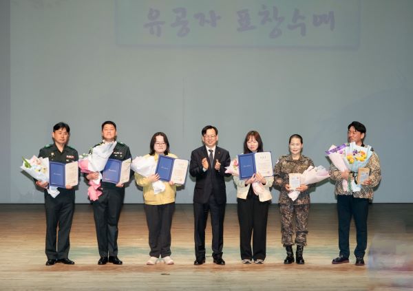 6일 오후 고광완 광주광역시장 권한대행이 서구 광주5·18기념문화센터에서 열린 '제58주년 예비군의 날 기념식'에 참석해 유공자 표창을 수여한 뒤 기념촬영을 하고 있다.(사진제공/광주광역시)