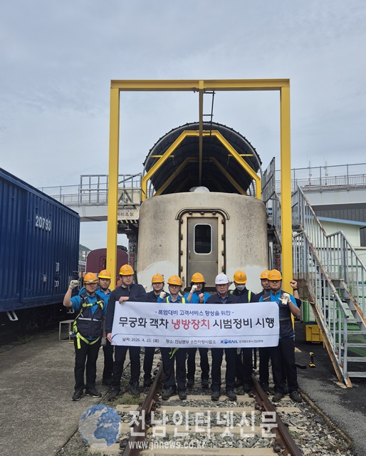 [전남인터넷신문/강계주] 코레일 전남본부는 다가오는 여름철 폭염에 대비 고객들에게 쾌적한 철도 서비스를 제공하기 위해 무궁화객차 상부탑재형 냉방장치 시범정비를 23일 전남본부 순천차량사업소에서 실시했다.